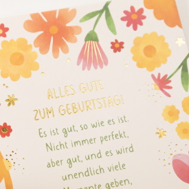 Happy Birthday to you! Heute ist dein Tag! Gönn dir Zeit nur für dich und genieße jeden Moment. Du bringst so viel Freude und lachen in die Welt. Du hast so viel Kraft in dir, mehr, als du ahnst. Sei stolz auf dich und alles, was dich ausmacht. Genau so, wie du bist, bist du perfekt. Lass alles los, was dich belastet, und mach Platz für Leichtigkeit und Freude. Höre auf dein Herz und lass es dich leiten. Du wirst geliebt. Du bist absolut einzigartig und wunderbar. Glaub an dich: Alles, was du dir vornimmst, kannst du erreichen. Du machst die Welt schöner!