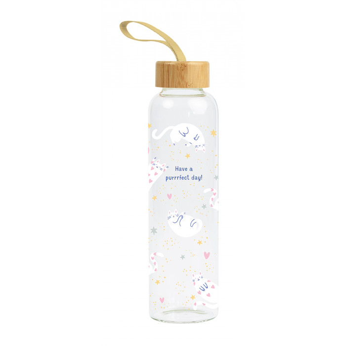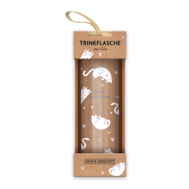 Die praktische Trinkflasche für unterwegs, beim Sport oder im Büro. Das liebevoll gestaltete Design macht dich und deinen neuen Begleiter zum echten Hingucker. So wird dein tägliches Wasser trinken zum stylischen Highlight und du bist durch die Benutzung der wiederverwendbaren Glasflasche freundlich zur Umwelt! Vor dem ersten Gebrauch sorgfältig ausspülen. Keine heißen Getränke einfüllen. Regelmäßig mit warmem Wasser, Seife und einer Flaschenbürste säubern. • Masse: 24 x Ø 6.5 cm