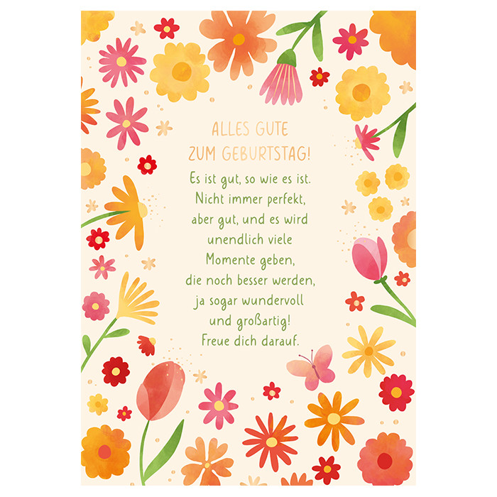 ALLES GUTE ZUM GEBURTSTAG! Es ist gut, so wie es ist. Nicht immer perfekt, aber gut, und es wird unendlich viele Momente geben, die noch besser werden, ja sogar wundervoll und großartig! Freue dich darauf.