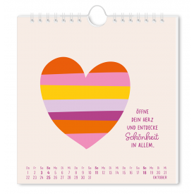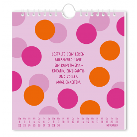Jeden Tag ein Lächeln, jeden Monat eine Überraschung - das ganze Jahr über Freude: Unsere Kalender verschönern mit lebendigen Motiven und ausgewählten Texten Blatt für Blatt deine vier Jahreszeiten und deine vier Wände. Hier findet garantiert jeder seinen Lieblingskalender: Die variantreichen Titel versprechen ein Jahr voller Inspiration. Die Motive sind heraustrennbar und lassen sich als Postkarte versenden. Jeder Postkartenkalender ist problemlos als Wand- und Tischkalender verwendbar.