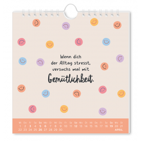 Jeden Tag ein Lächeln, jeden Monat eine Überraschung - das ganze Jahr über Freude: Unsere Kalender verschönern mit lebendigen Motiven und ausgewählten Texten Blatt für Blatt deine vier Jahreszeiten und deine vier Wände. Hier findet garantiert jeder seinen Lieblingskalender: Die variantreichen Titel versprechen ein Jahr voller Inspiration. Die Motive sind heraustrennbar und lassen sich als Postkarte versenden. Jeder Postkartenkalender ist problemlos als Wand- und Tischkalender verwendbar.