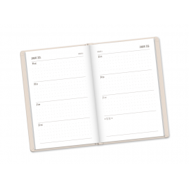 Diese Variante ist ein eleganter Begleiter durch das Jahr. Das edle Softcover im Lederlook ist fühlbar hochwertig verarbeitet und besonders unempfindlich. Filigran geprägte Ornamente zieren das Cover des attraktiven Terminplaners. Jede Kalenderwoche ist übersichtlich auf einer Doppelseite dargestellt. Außerdem bietet der Timer Platz für Geburtstage, Notizen und all das, was Dir wichtig erscheint.