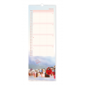 Mit diesem Planer organisiert sich das Zusammenleben zu zweit leichter: Jeder Partner bzw. Mitbewohner hat seine eigene Spalte für persönliche Eintragungen. Eine weitere Spalte bietet Platz für gemeinsame Termine und Unternehmungen. • Format: 17 x 48 cm