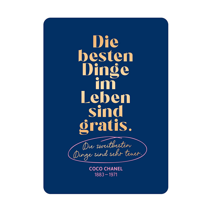 Die besten Dinge im Leben sind gratis. Die zweitbesten Dinge sind sehr teuer. Coco Chanel 1883 - 1971